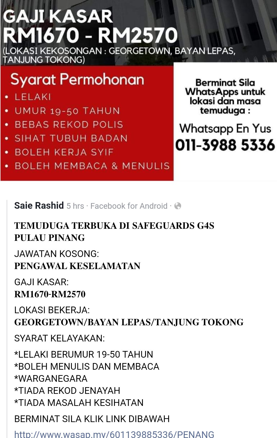 Surimee On Twitter Vacancy Security Guard Penang Rm1 6 2 5k Please Rt Bus Ticket Can Be Sponsored If Layak Https T Co Dc2dsmqtk7 Twitter